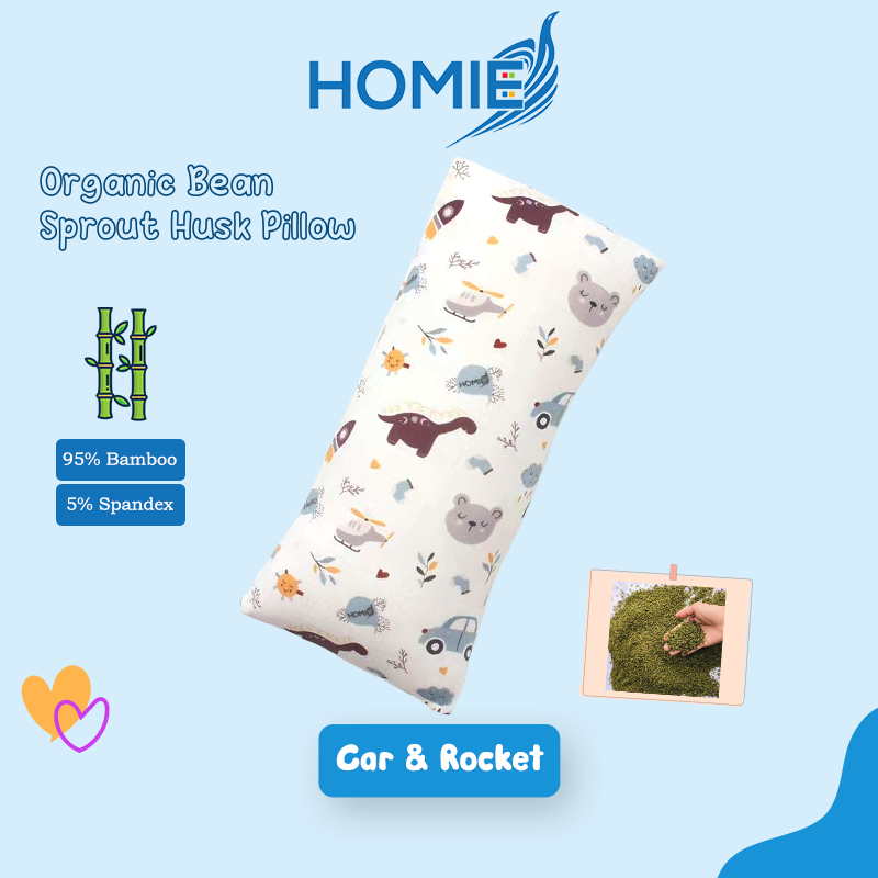 Homie proudly produces these pillows locally in Singapore using 100% premium organic bean sprout husks, specially crafted for your baby's safe and comfortable sleep.
