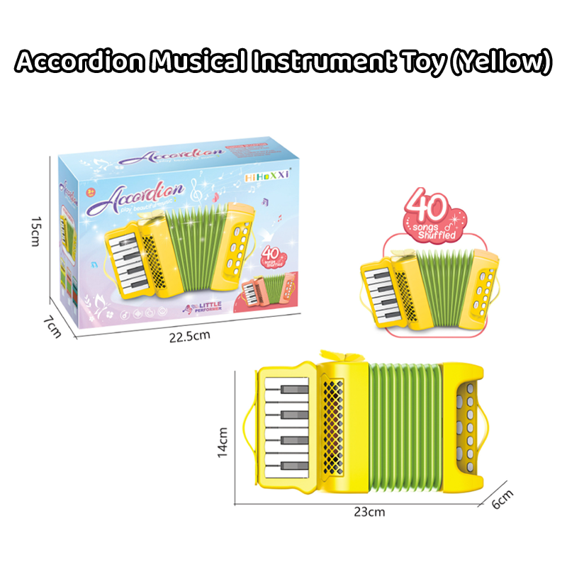 Ignite your child's passion for music with the fun and engaging HOMIE Accordion Musical Instrument Toy (available in Pink and Yellow). Designed perfectly for little hands, this portable toy accordion features a full set of keys and bellows that produce cheerful music. It comes pre-loaded with 40 built-in songs and teaches kids rhythm, coordination, and fundamental musical concepts through play. Itโ€™s the perfect first instrument!