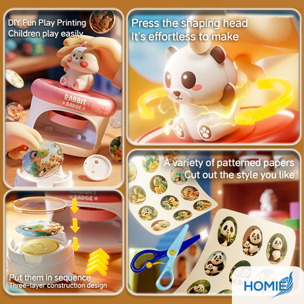 #HOMIE #HOMIESG #HomieBadgeMakerKit #BadgeMakerKit #DIYBadge #PinButtonMaker #CustomBadges #KidsCrafts#DIYforKids #CreativeToys #LearningToys #HandmadeGifts #HobbyKit #CuteAnimals #PandaLove #DinosaurToys #RabbitDesign #Kawaii #ShopifyStore #GiftsForKids #BirthdayGift #CraftTime