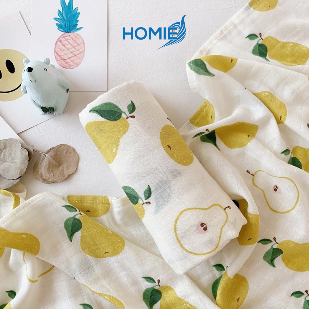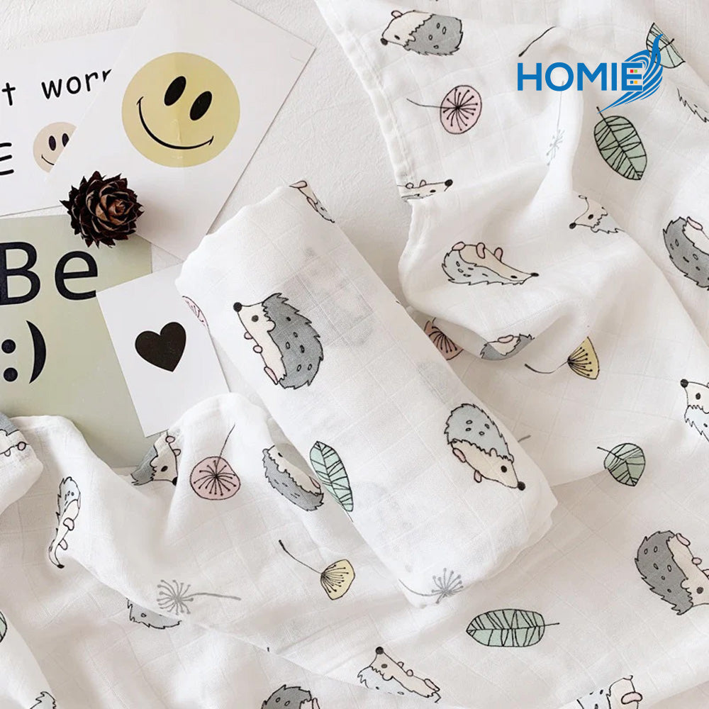 HOMIE BAMBOO MUSLIN SWADDLE BLANKET ultra soft breathable organic baby wrap (120x120cm)