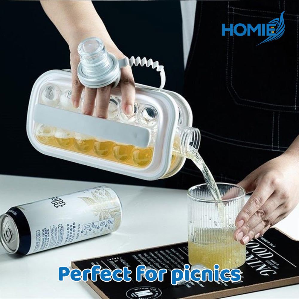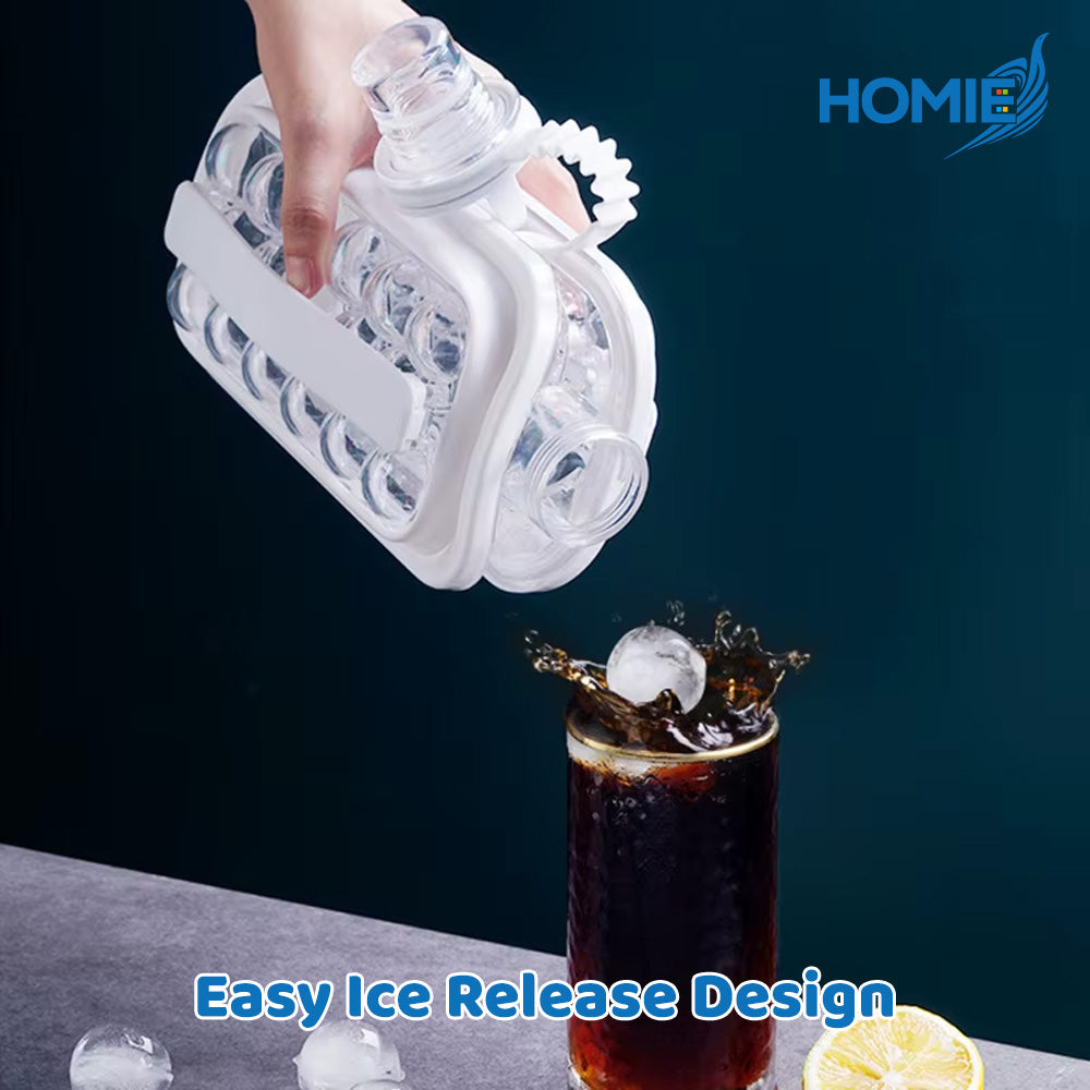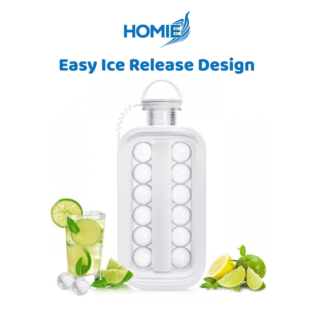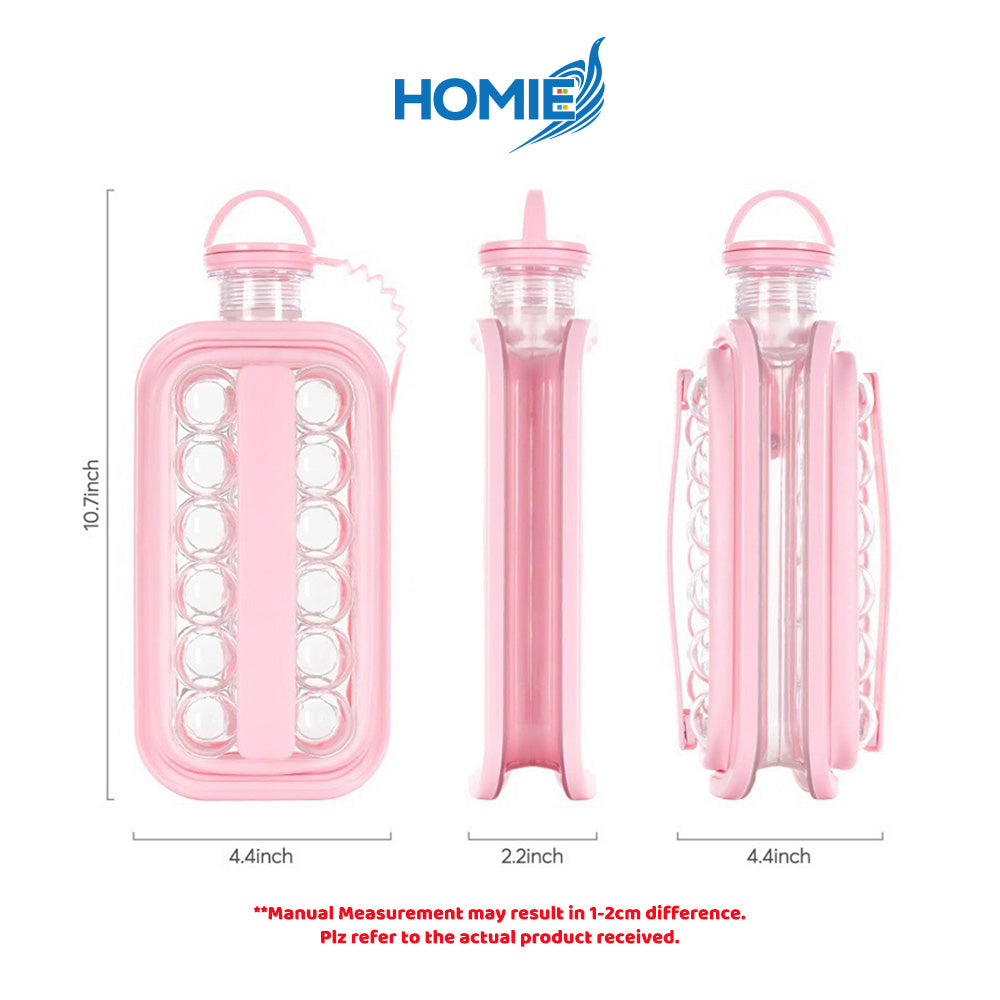 Meet the revolutionary HOMIE Ice Cube Making Bottle—your new summer essential! This 2-in-1 design lets you freeze perfect round ice balls and easily use the container as a portable water bottle. Say goodbye to messy ice trays and freezer odors. Simply fill, freeze, and serve! Available in sleek White, Gray, and charming Pink. Get yours now and keep your drinks perfectly chilled!