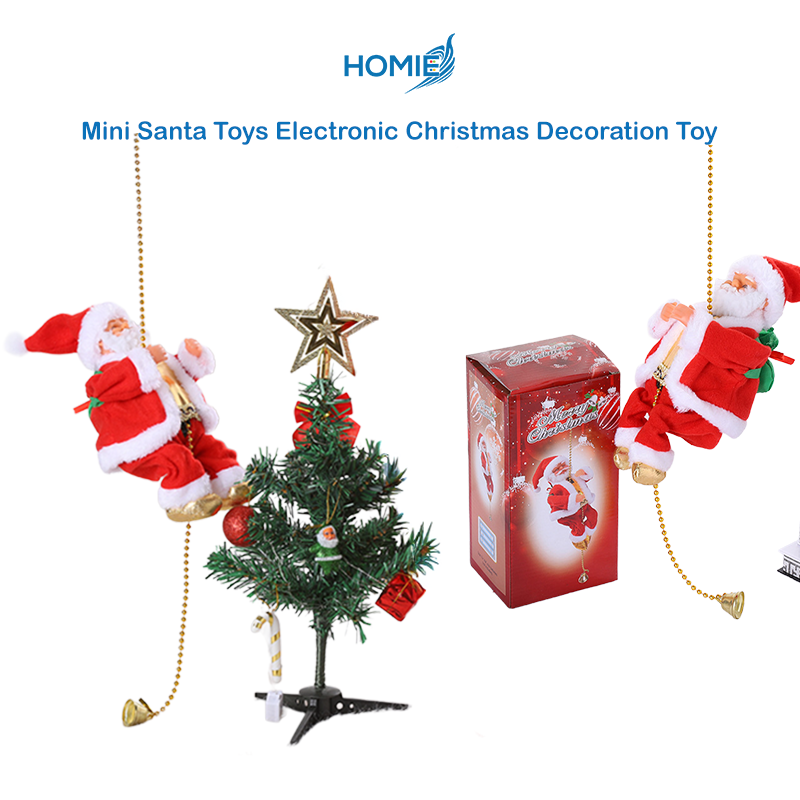 This adorable Hanging Santa Claus Doll features Santa dressed in a classic bright red outfit with fluffy white trim. The doll is designed in a playful climbing/rope-hanging pose, holding onto a gold bead chain as if heās sliding or climbing down to deliver gifts.
