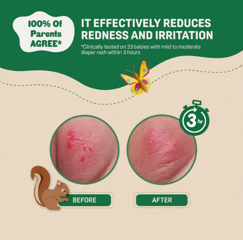 *100% agree that Natural Botanical Baby Diaper Cream reduces redness and irritation in 3 hours. Based on a clinical study of baby volunteers with mild to moderate diaper rash, conducted under pediatrician control.