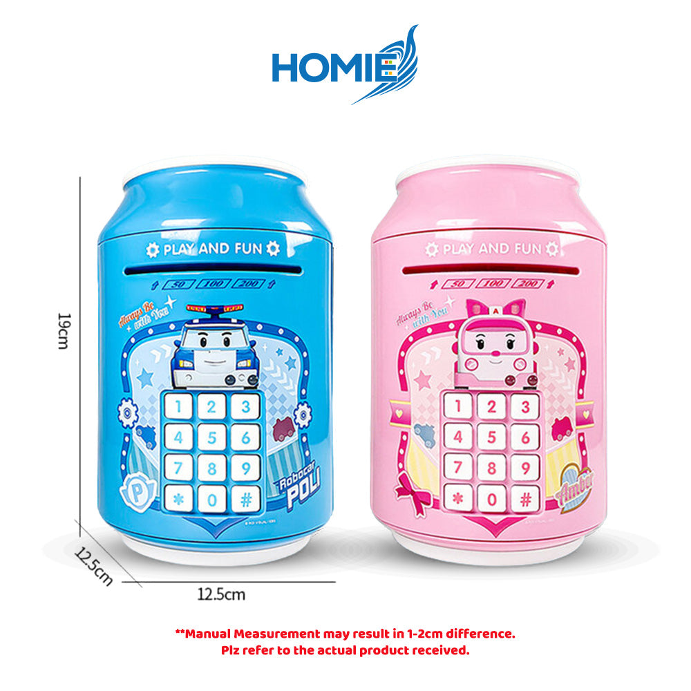 Teach your kids the value of money in a fun, interactive way with the HOMIE Digital Piggy Bank! Designed like a cute soda can with a personalized theme (Police Car for Blue, Princess Car for Pink), this innovative bank features a password-protected ATM lock and a coin slot/paper money slot. It's more than just a savings boxβ€”it's a smart, secure way for children to manage their allowance and set saving goals!
